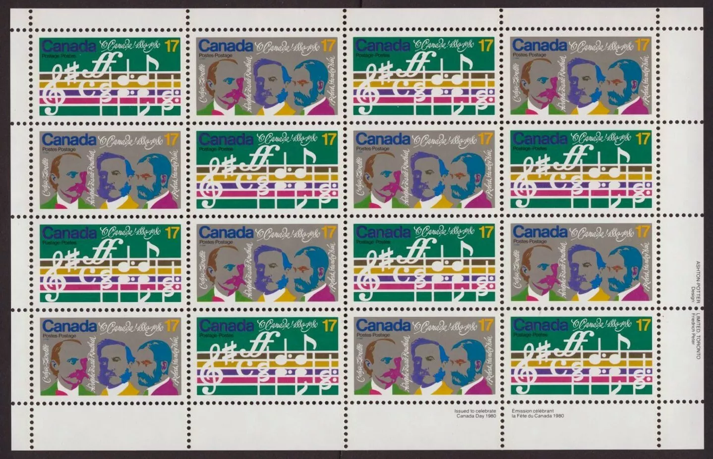 MNH MUSIC COMPOSER’S SHEET (16) WITH ORIGINAL “OH CANADA” PACKAGE
