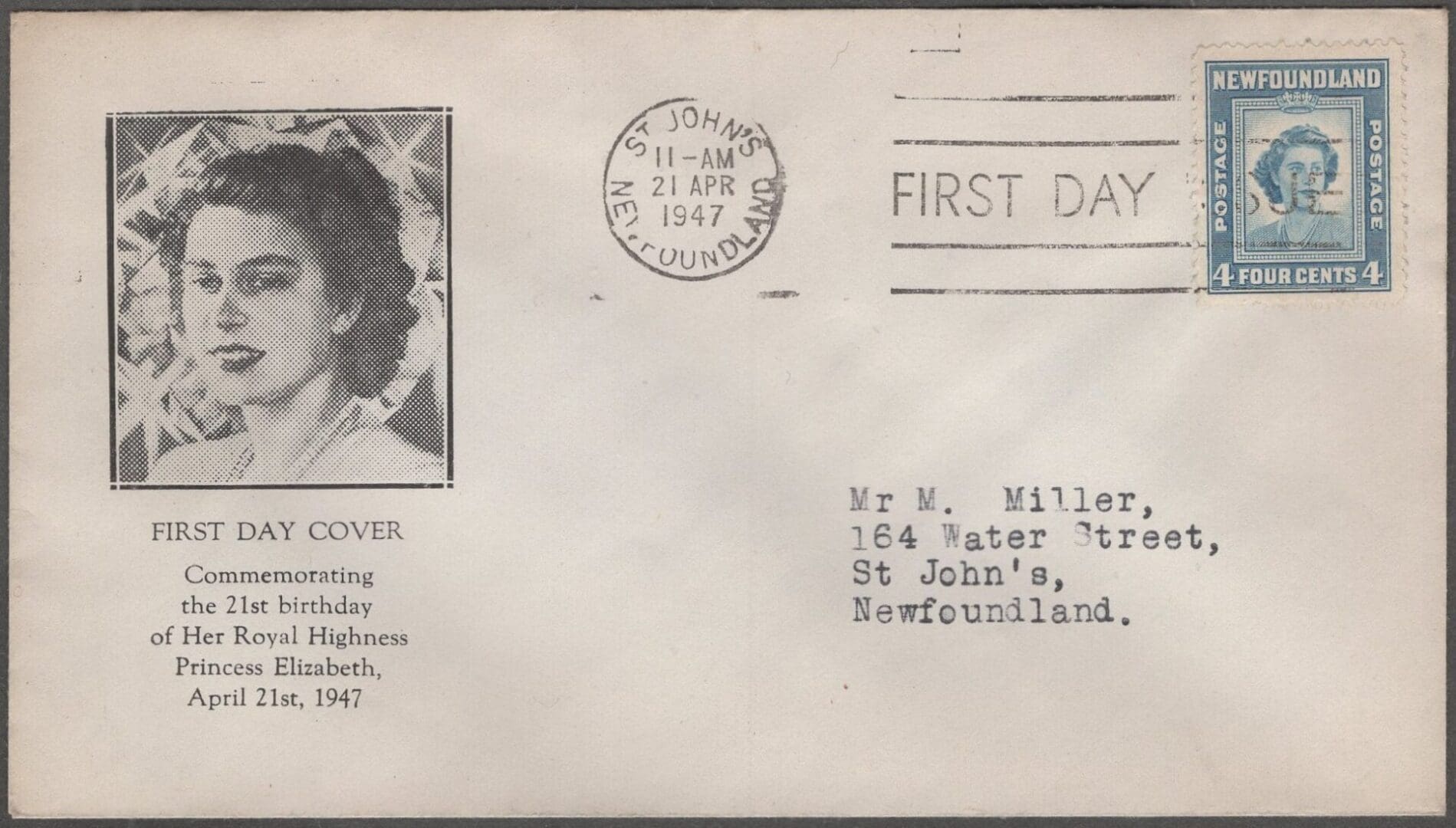 PRINCESS ELIZABETH’S 21st BIRTHDAY COMMEMORATION” FIRST DAY COVER