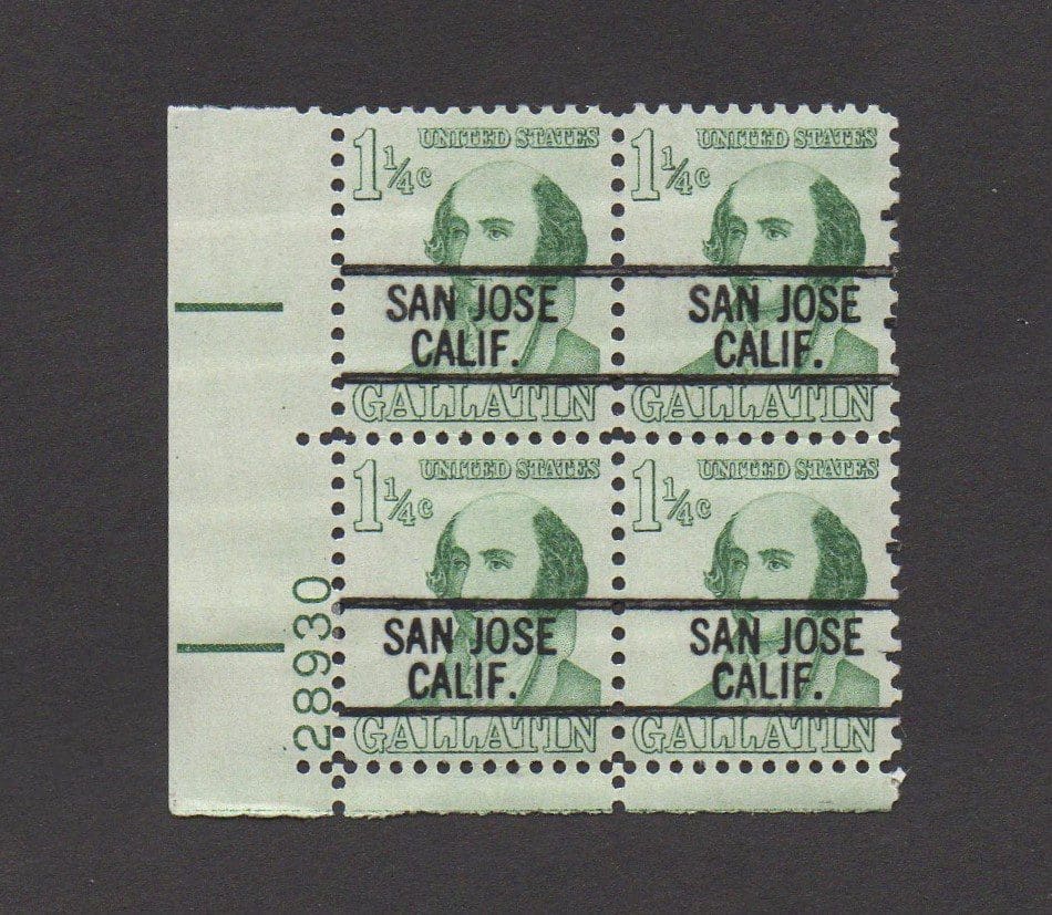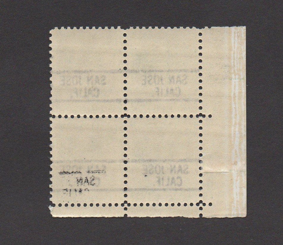 SAN JOSE CA. PRECANCEL PLATE BLOCK (4) WITH OG DURLAND 2016 VALUE $75.00