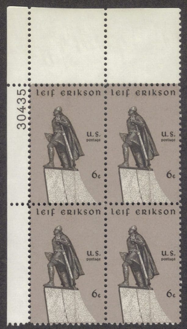 Scott# 628 “ERICSSON MEMORIAL” MNH PLATE BLOCK (6) VERY NICELY CENTERED
