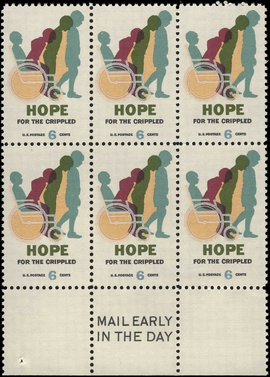 Scott# 1439 “CARE – REACHING HANDS” MNH MAIL EARLY BLOCK (6) NICELY CENTERED