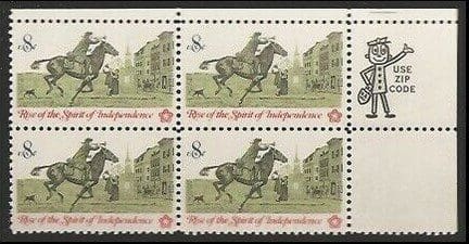 Scott# 1380 “DANIEL WEBSTER-DARTMOUTH COLLEGE” MNH ZIP BLOCK (4)