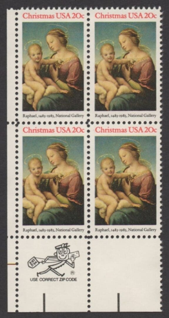 Scott# 2514 “MADONNA & CHILD” ZIP BLOCK (4) MNH, WELL CENTERED