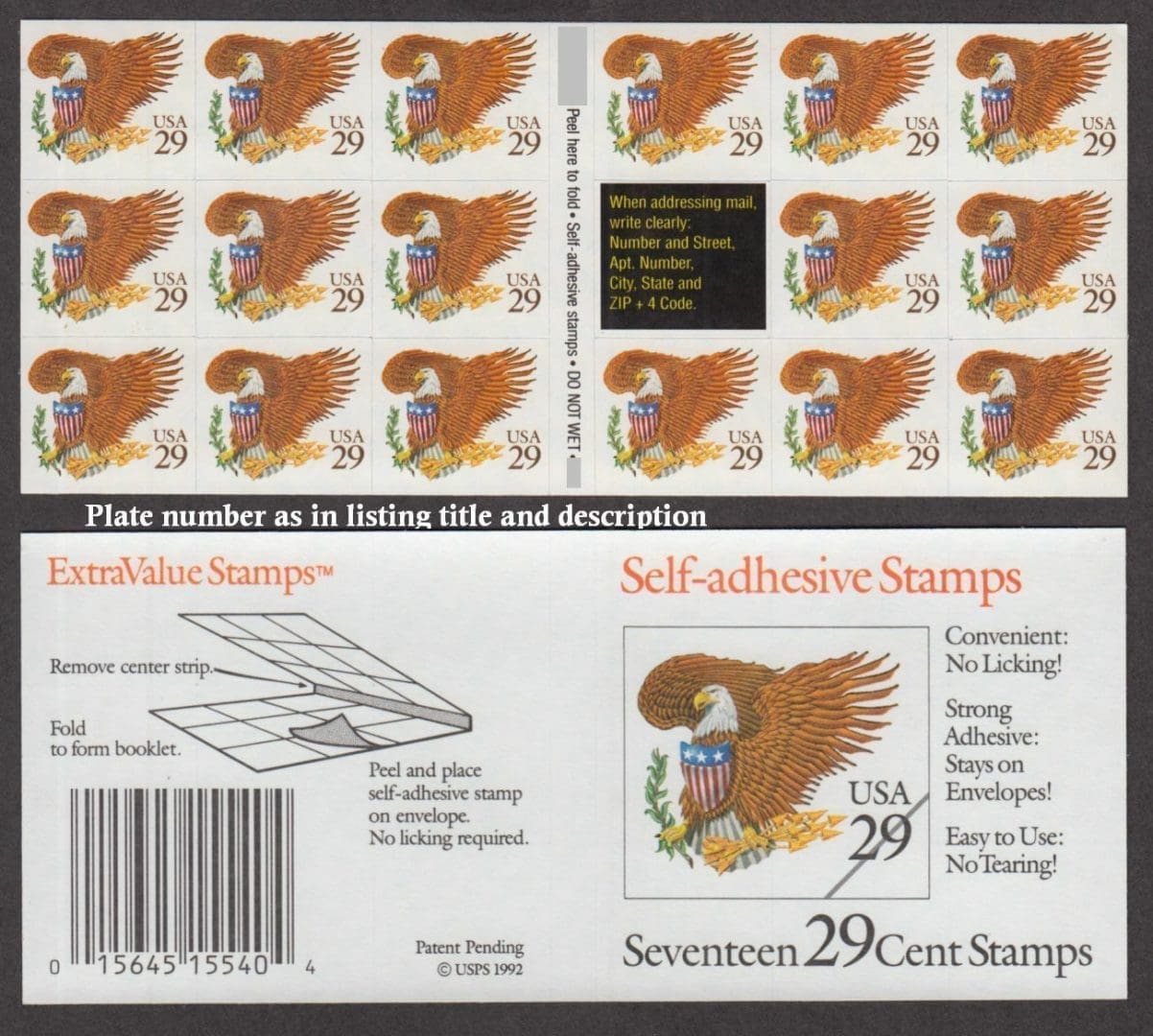 S/A BROWN UNFOLDED BOOKLET PANE (18) WITH PLATE#, NICELY CENTERED