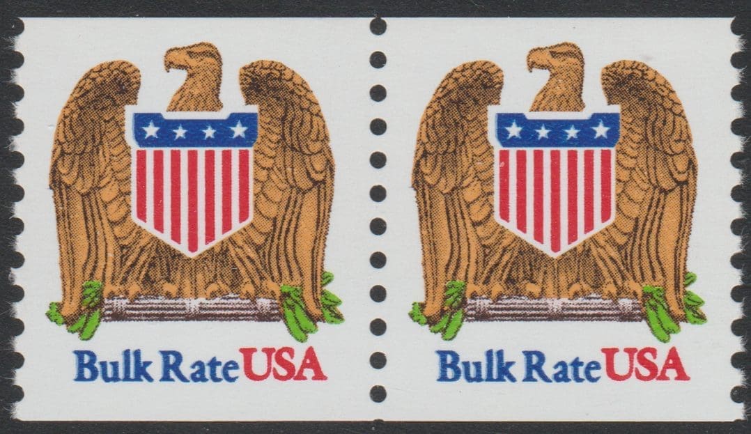 MNH BLUE BULK RATE COIL PAIR, NICELY CENTERED