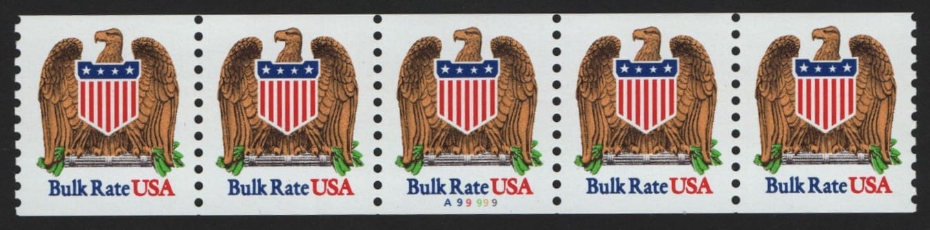 MNH BLUE BULK RATE PNC5, PLATE# A99999, NICELY CENTERED
