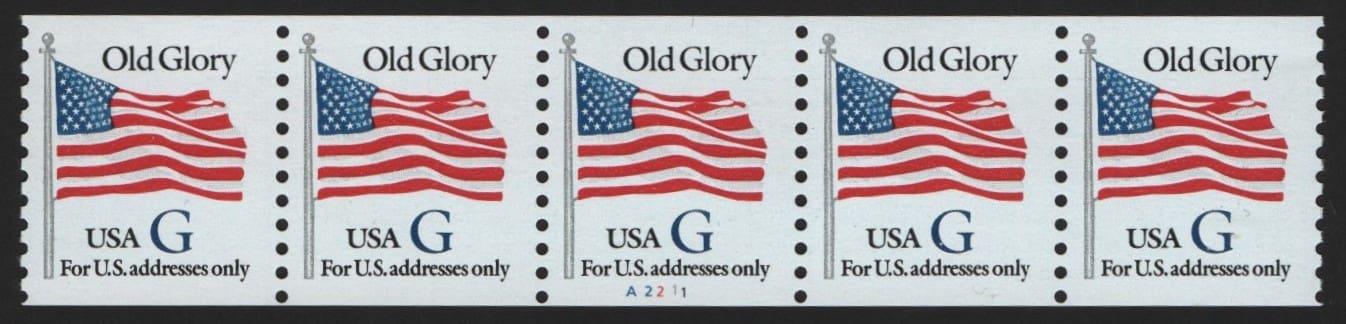 BLUE “G” RATE MNH PNC5, PLATE# A2211, NICELY CENTERED