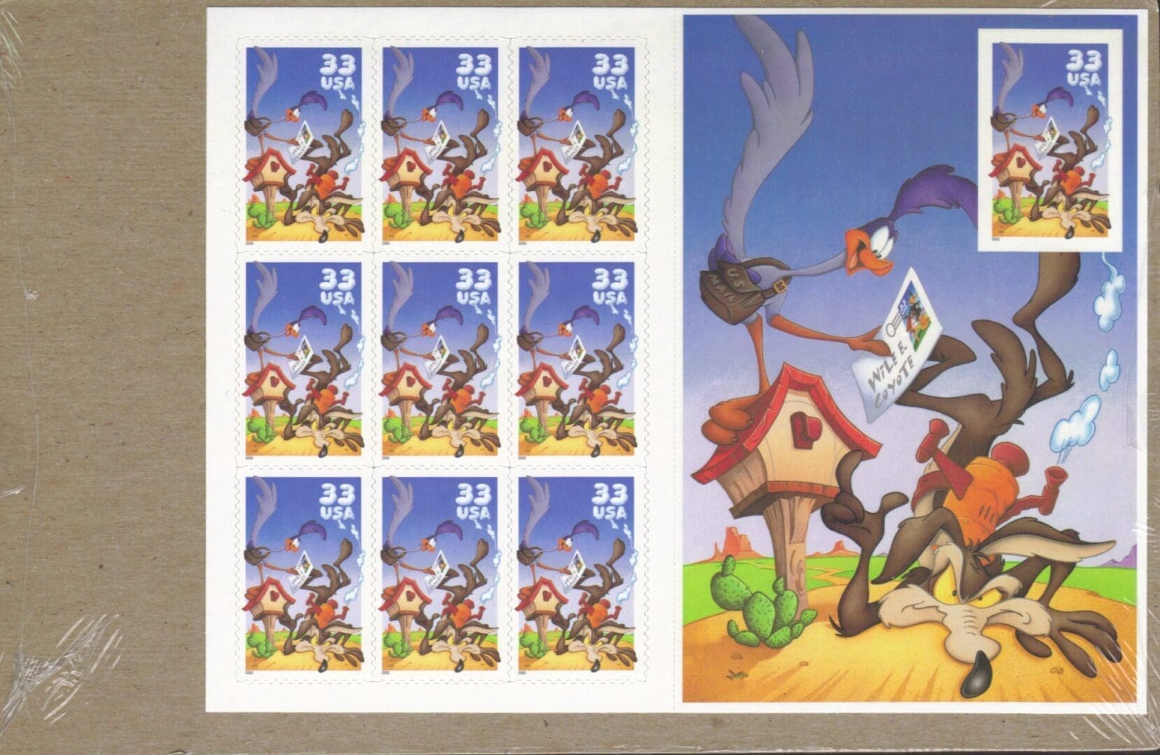 MNH ROAD RUNNER & WILE E. COYOTE IMPERFORATE ERROR SOUVENIR SHEET * 10th STAMP NO DIE CUT *