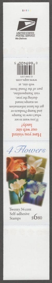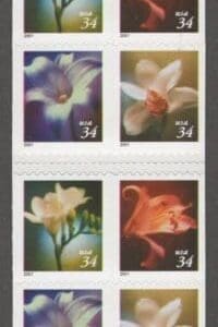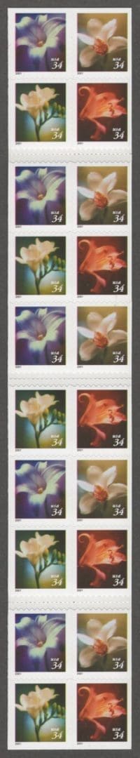 Scott# 3487-90 (3490b,c,d) (BK284) “LILIES” MNH 2001 DATE DOUBLE SIDED BKLET PANE (20)