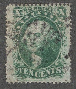 Scott# 35 “WASHINGTON” TYPE V (PLATE II) 7 BAR CIRCULAR GRID CANCEL