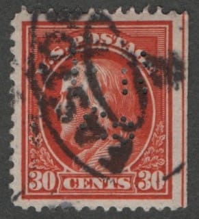 USED PERF 12, SLWMK WITH AN EASTON, PA DOUBLE OVAL CANCEL & D219 M RUMELY CO PERFIN, CUTTING GUIDELINE EDGE