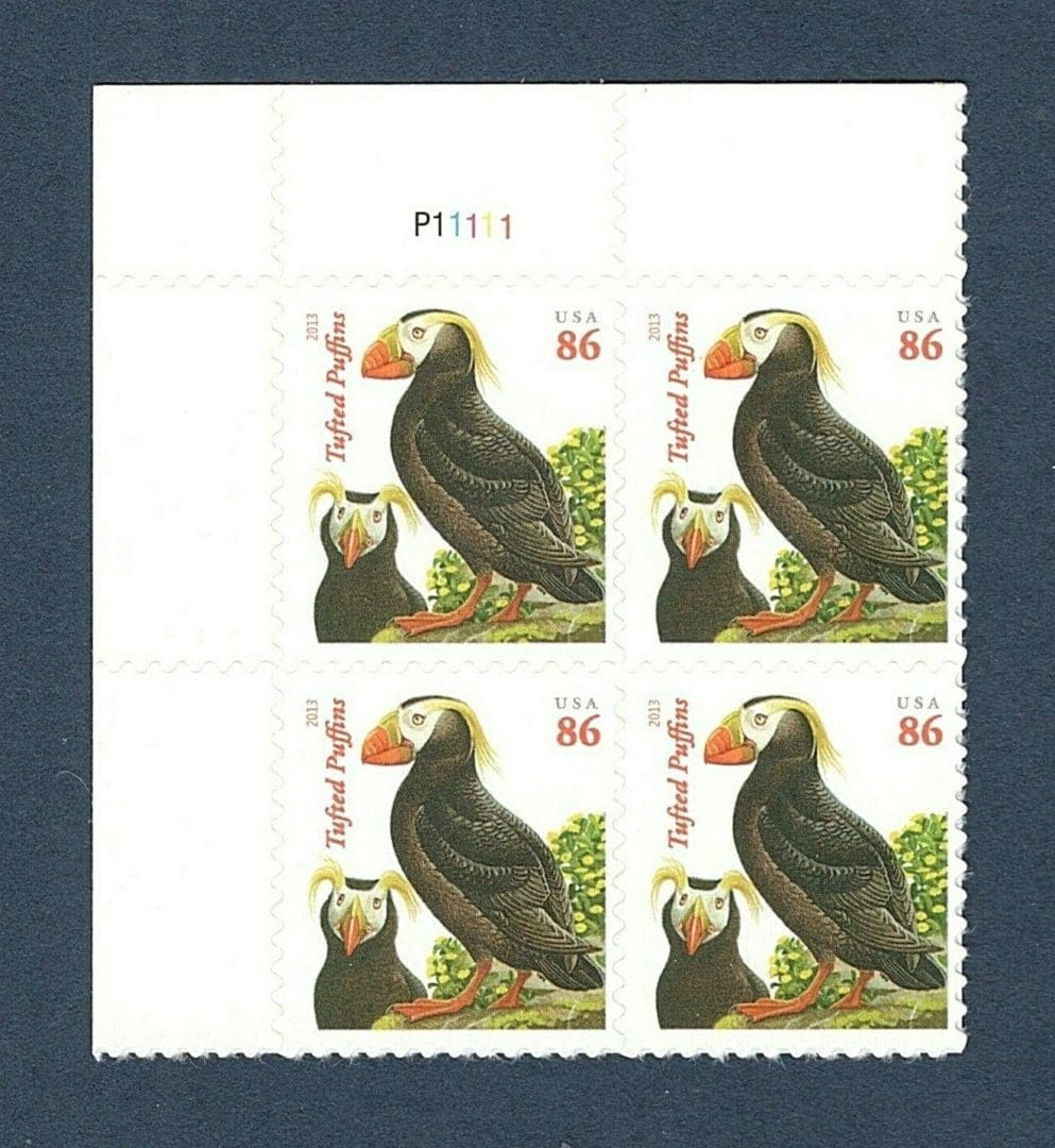 S/A PLATE BLOCK (4) BLACK DATE, MNH, NICELY CENTERED