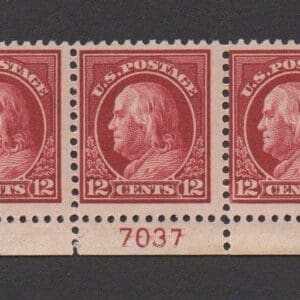 Scott# 509 “FRANKLIN” FLAT PLATE, PERF 11 PLATE # STRIP OF (3) MNH