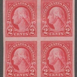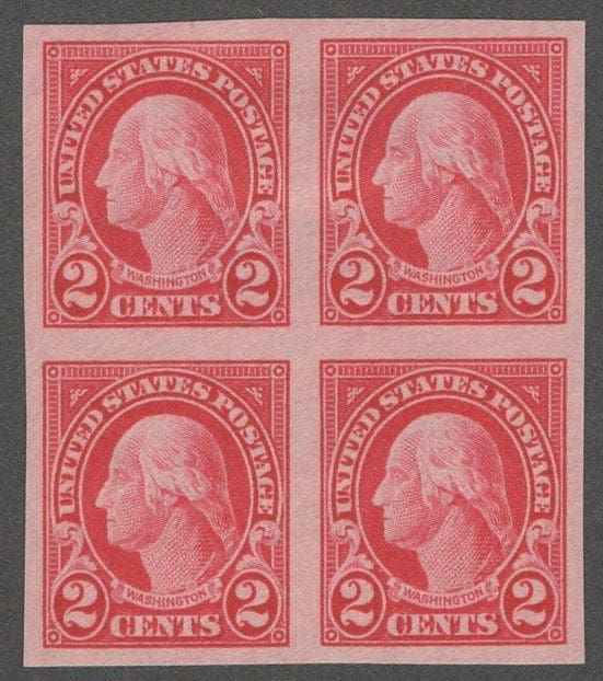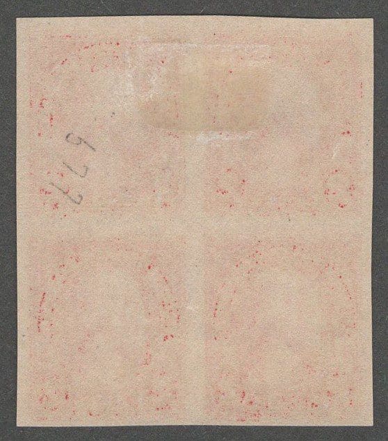 IMPERFORATE BLOCK (4) (TOP (2) MH, BOTTOM (2) MNH, NICELY CENTERED.
