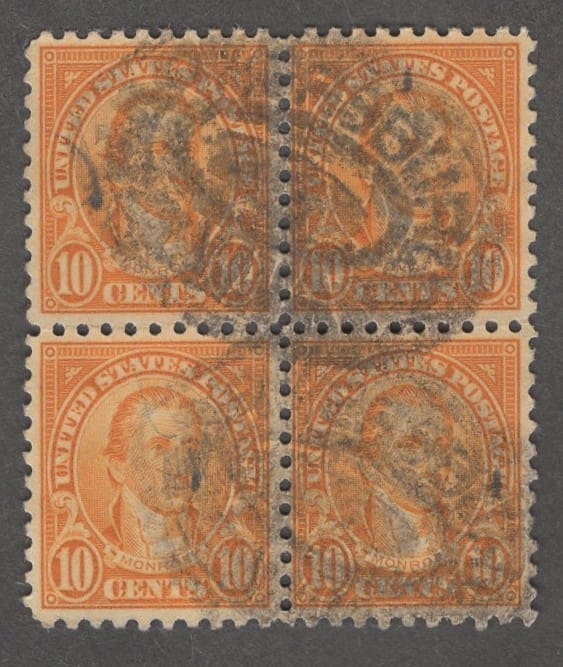 Scott# 668 “KANSAS OVERPRINT – MONROE” WITH AUGUSTA, MAINE DOUBLE OVAL