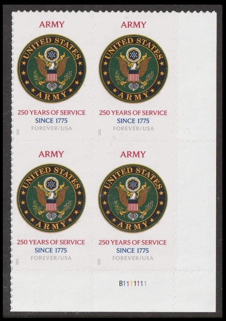 Scott# 6003 “ARMY 250TH ANNIVERSARY” MNH PLATE BLOCK (4)