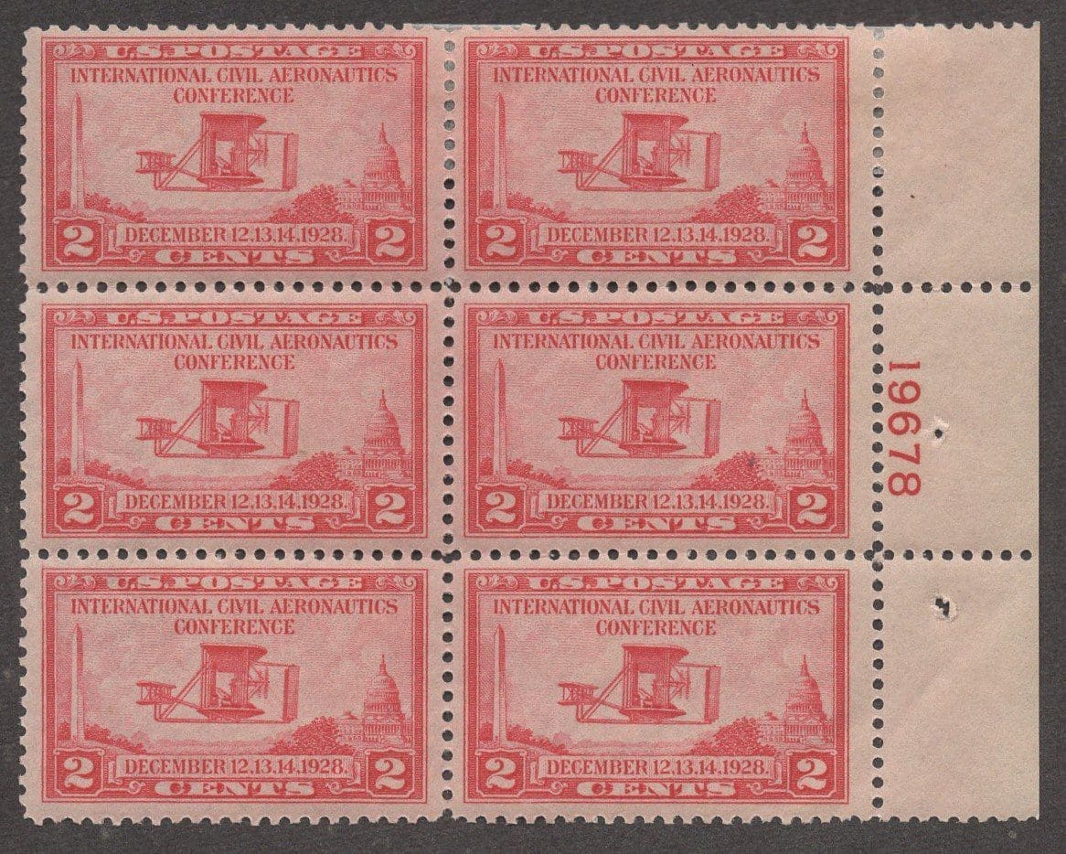 Scott# 682 “MASSACHUSETTS BAY COLONY” TOP PLATE BLOCK (6) MNH