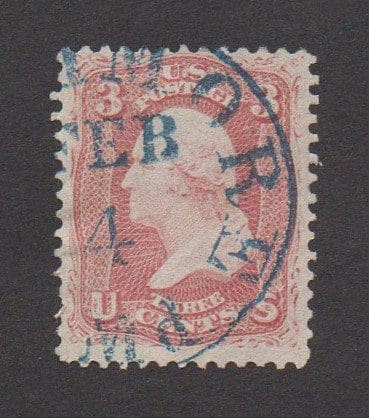 Scott# 77 “LINCOLN” 1ST MOURNING STAMP USED, BLUE BULLSEYE CANCEL