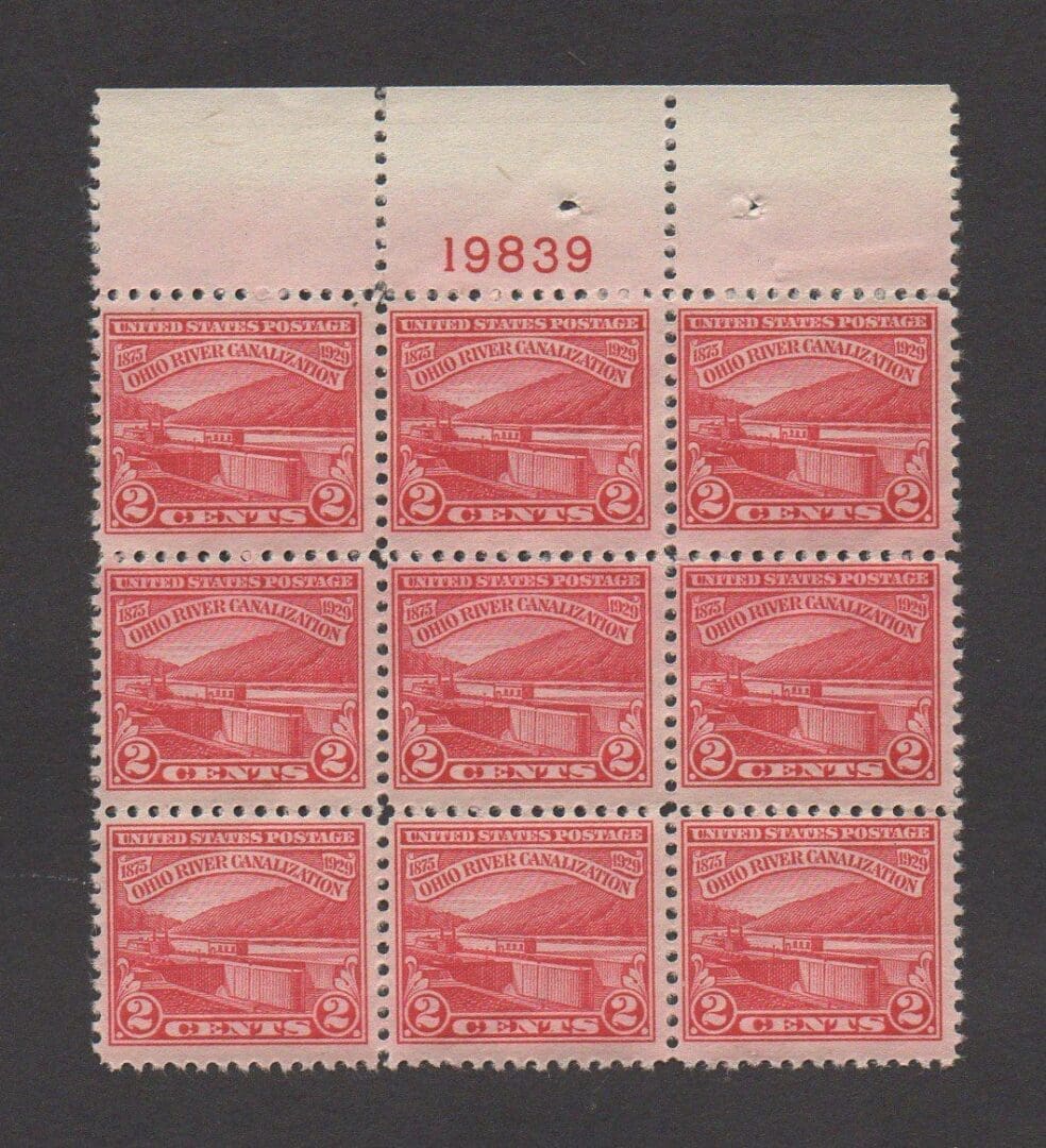 Scott# 680 “FALLEN TIMBERS” PLATE BLOCK (6) MINT, NICELY CENTERED.