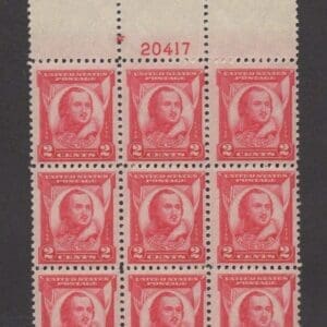 MNH TOP PLATE BLOCK (9) PRISTINE OG, NICELY CENTERED