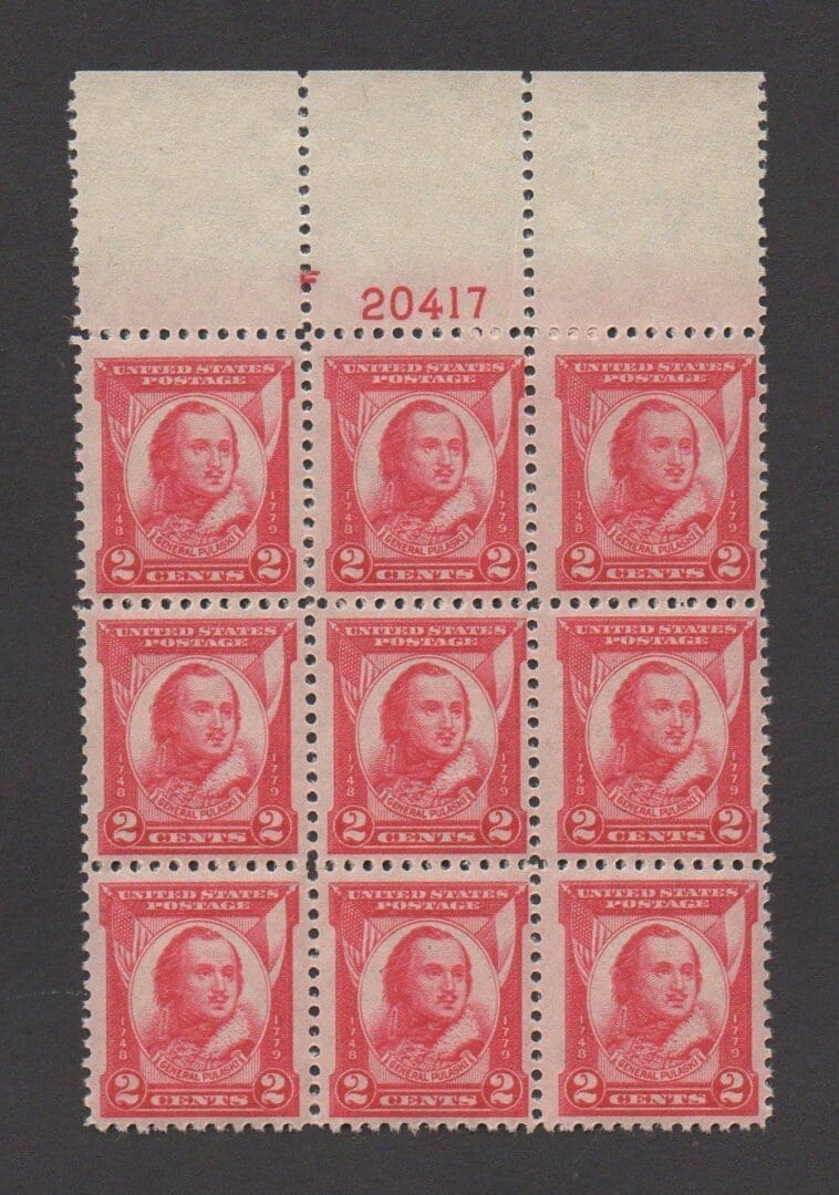 Scott# 682 “MASSACHUSETTS BAY COLONY” TOP PLATE BLOCK (6) MNH