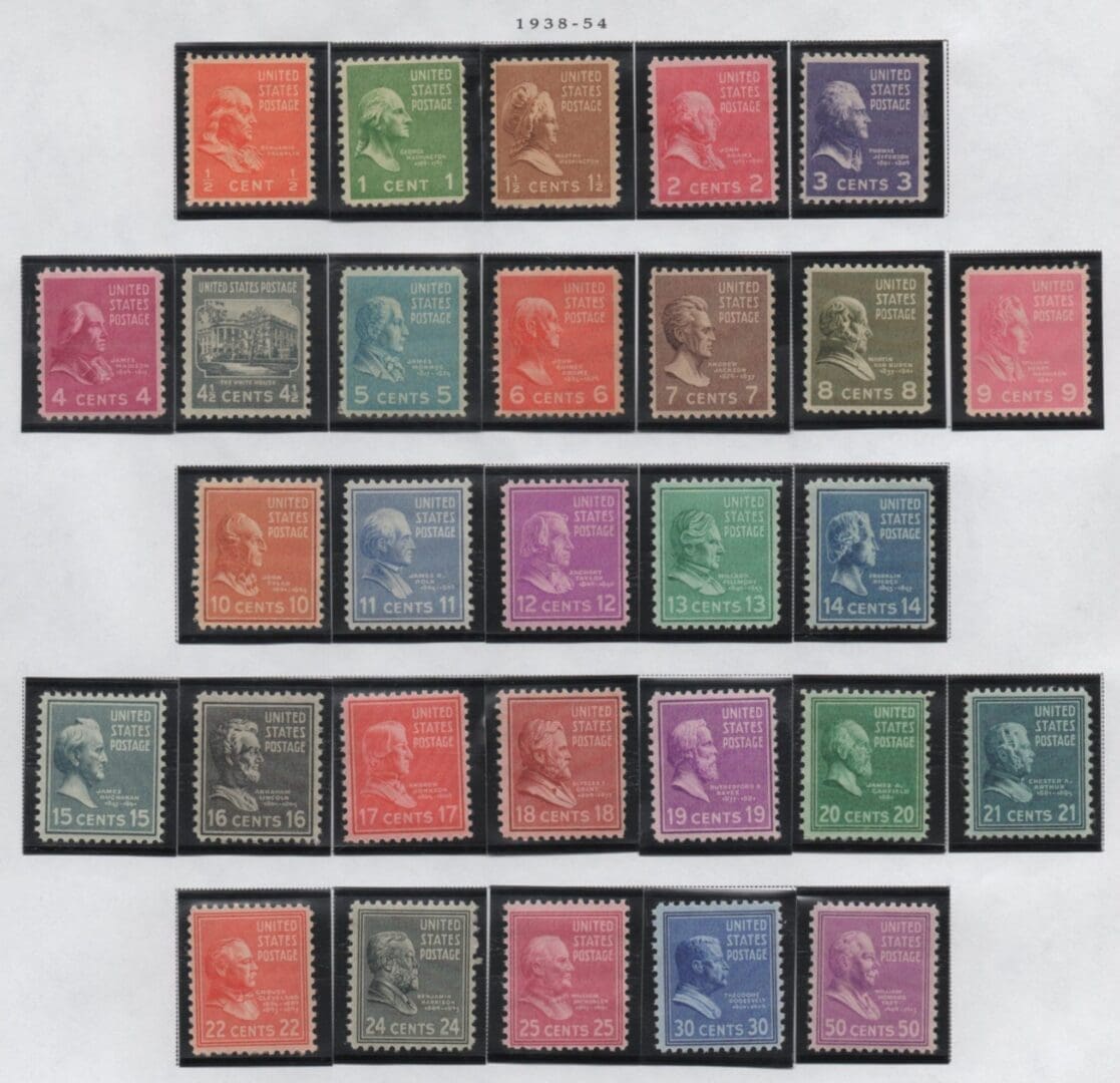 MNH SHORT SINGLES PERFORATED SET of the PRESIDENTIAL SERIES SET AS SHOWN