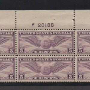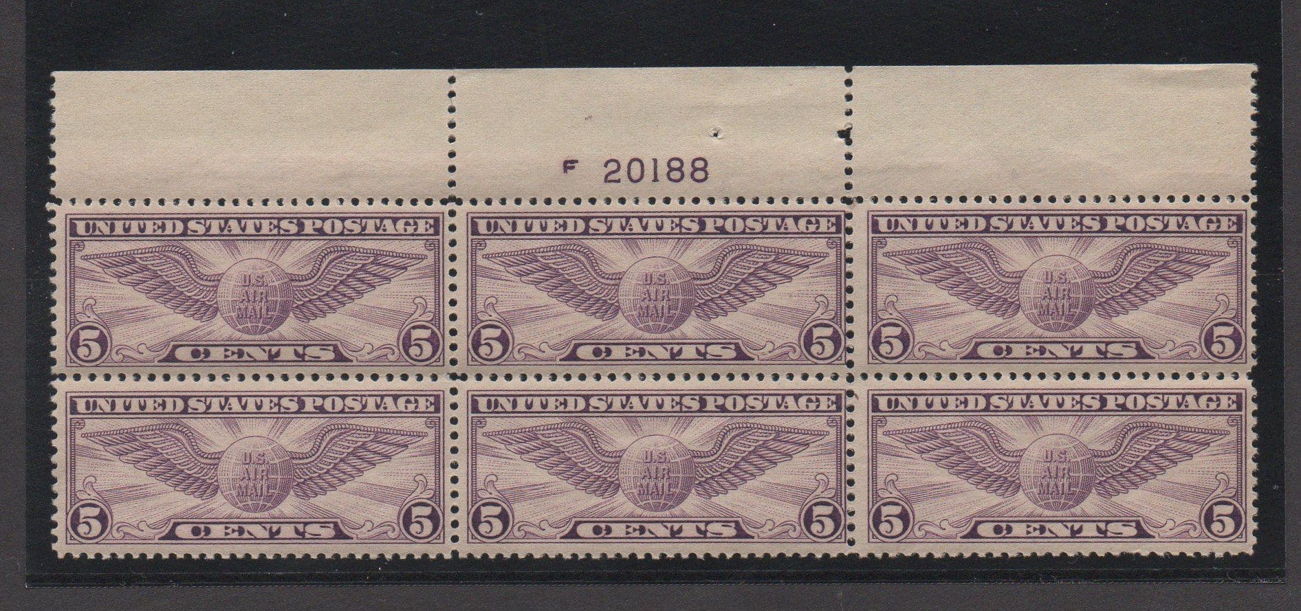 AIRMAIL PERF 11 TOP PLATE BLOCK (6) MNH