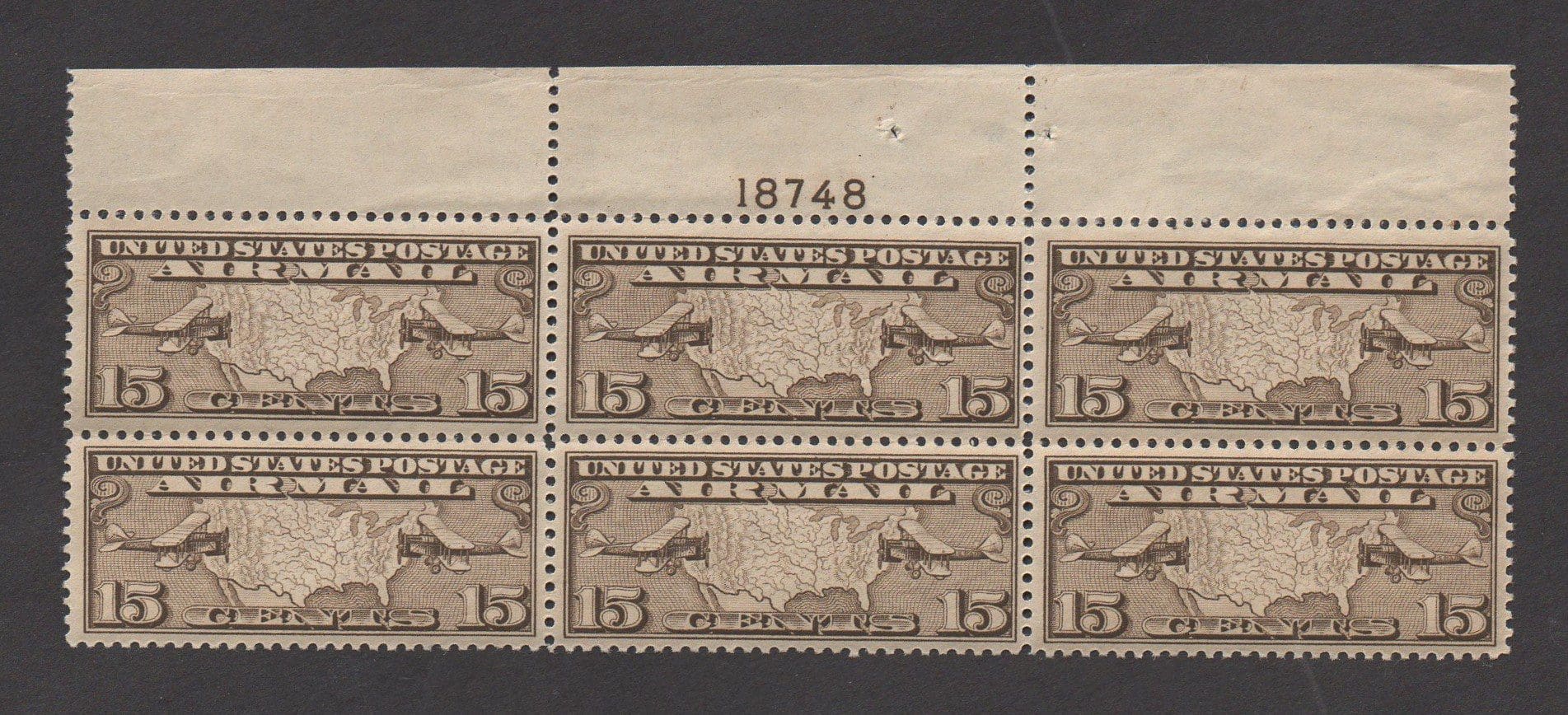 AIRMAIL TOP PLATE BLOCK (6) MNH, VERY NICELY CENTERED