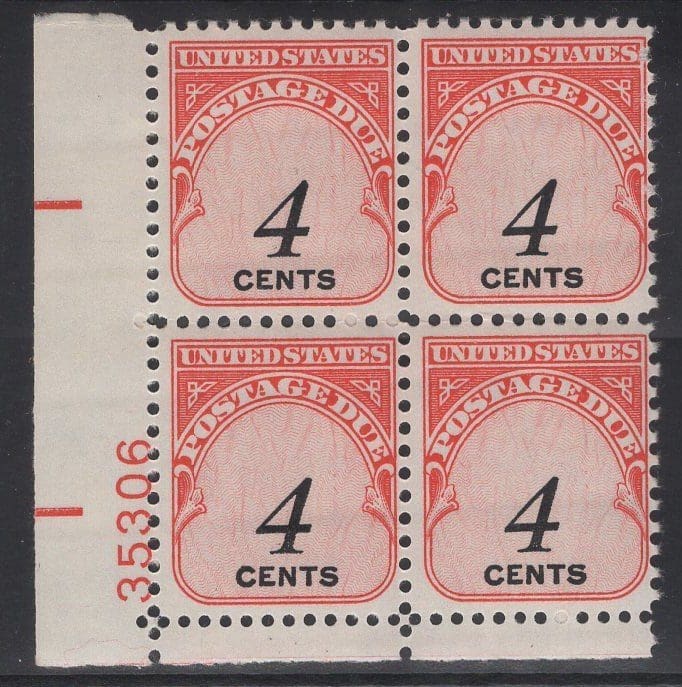 ROTARY PRESS PRINTING, 11 x 10.5 MNH PLATE BLOCK (4)