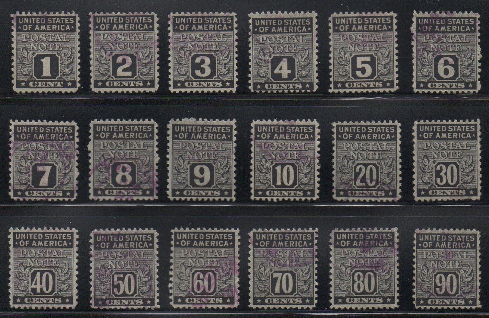 USED SET 1-90 CENT, VIOLET CANCELS, ALL NICELY CENTERED