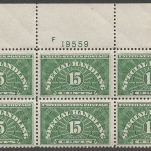 MNH TOP PLATE BLOCK (6) WELL CENTERED * NATURAL GUM SKIPS COMMON FOR THESE SPECIAL HANDLING PRINTINGS *