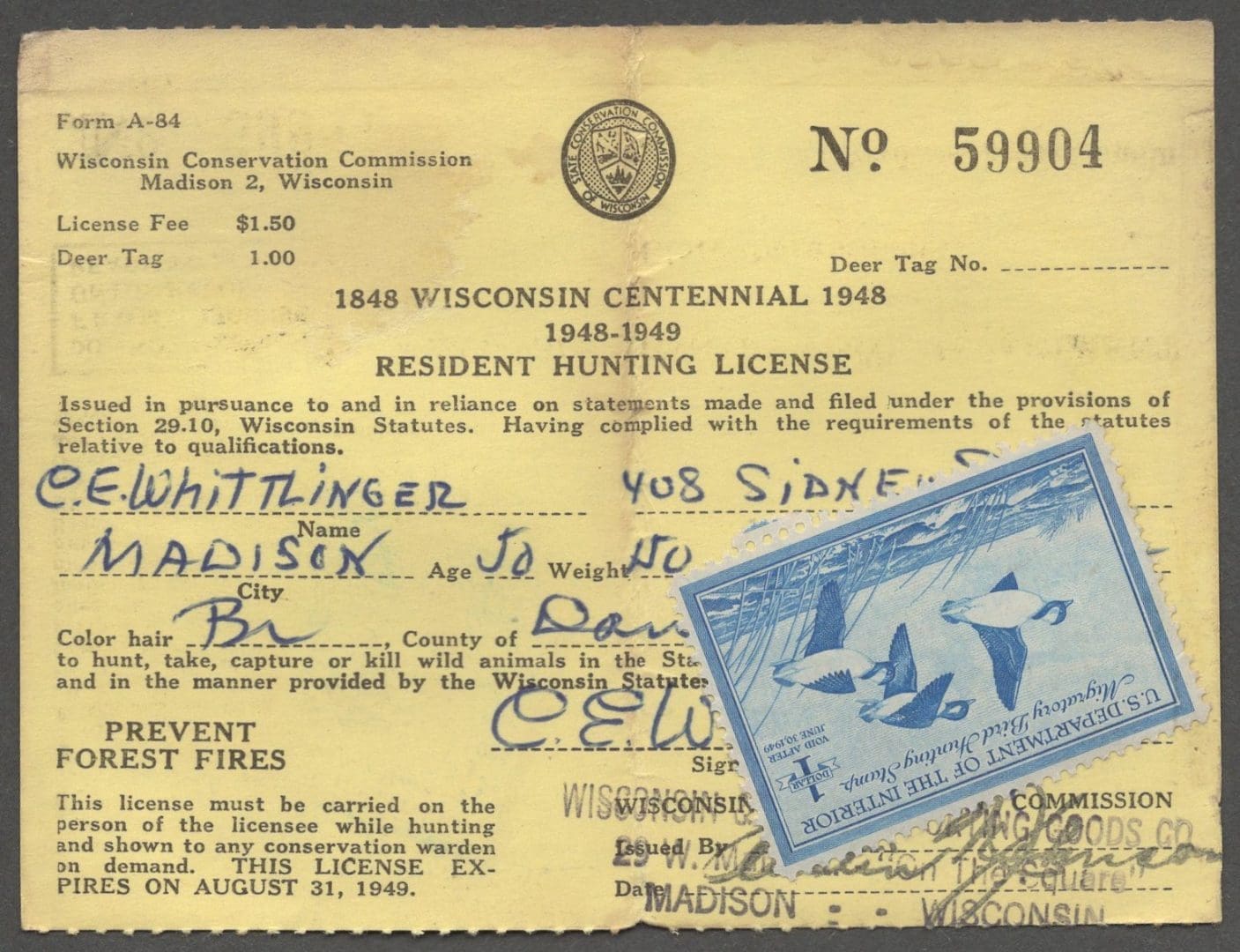USED ON WISCONSIN LICENSE, NICELY CENTERED