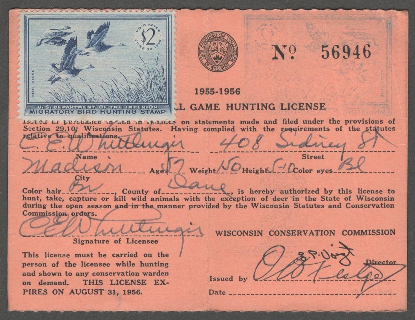 USED ON WISCONSIN LICENSE, NICELY CENTERED